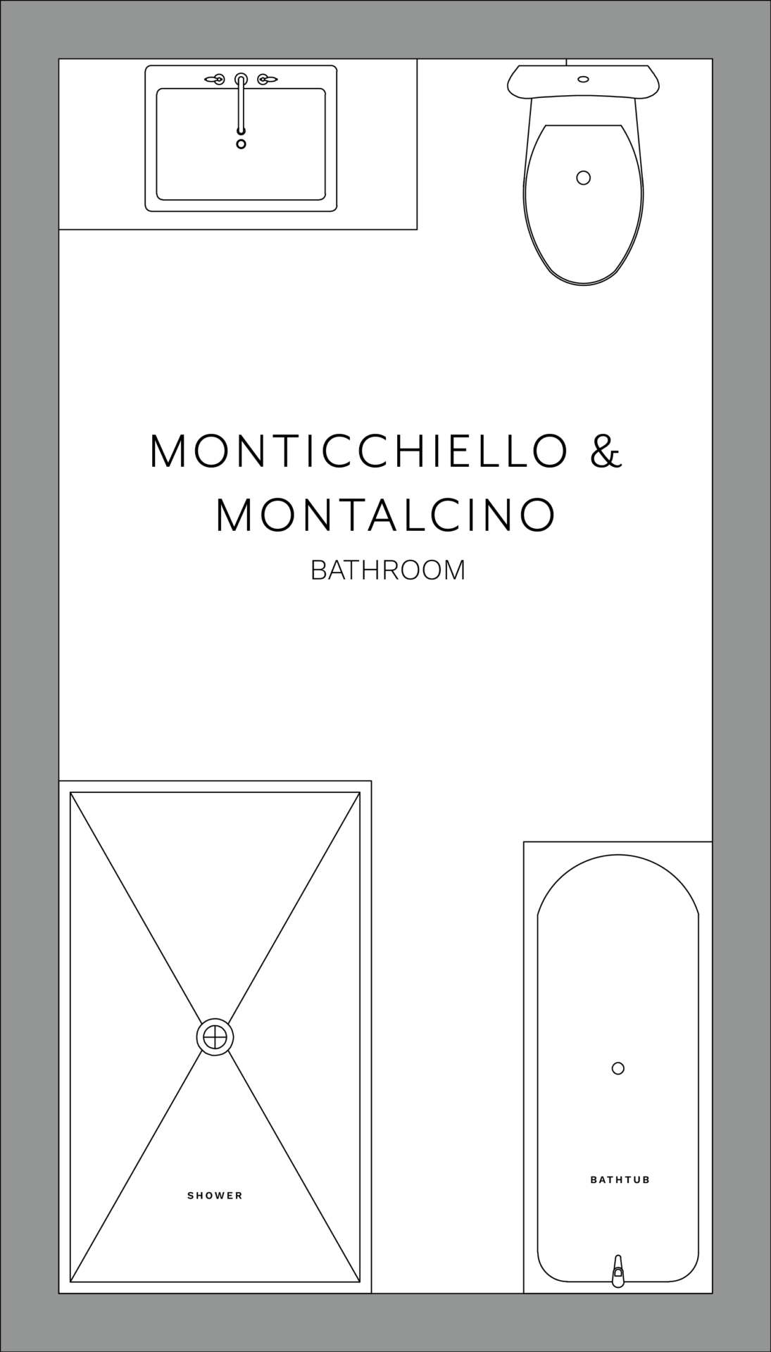 Queen Size bed (Monticchiello) and 2 Twins beds (Montalcino), Shared Bathroom with shower and bathtub duo and large walk in closet.